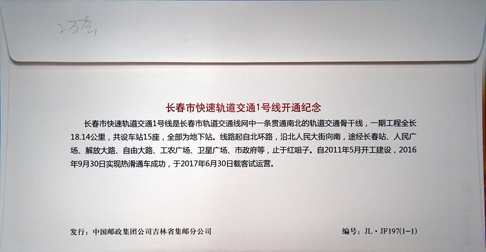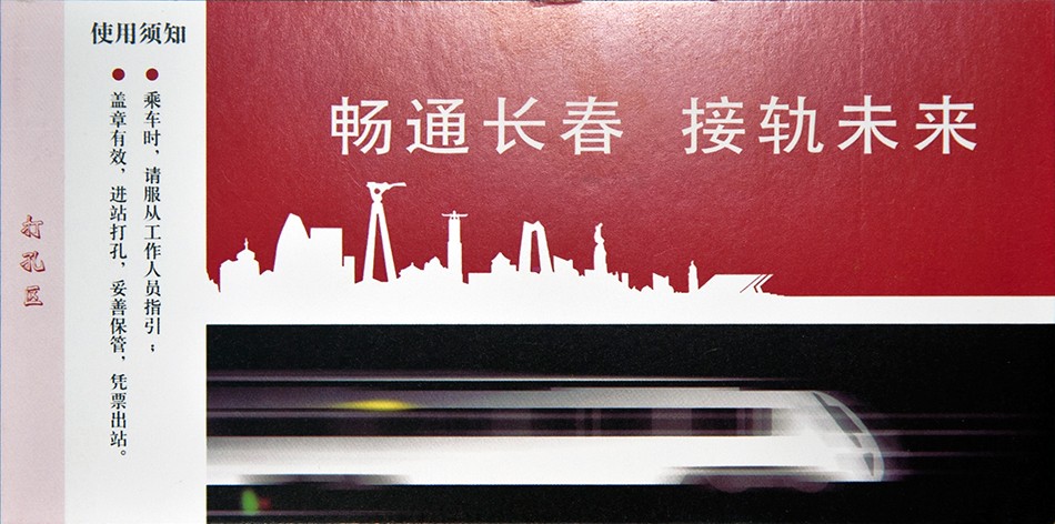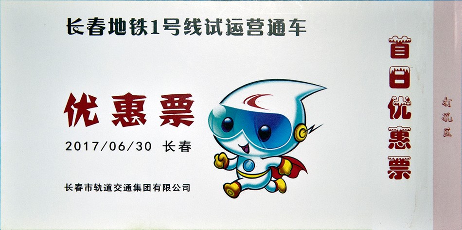 长春轻轨1号线“长春站-卫光街”试运营纪念车票