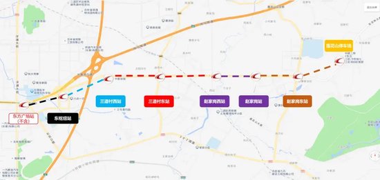 轨道交通2号线东延工程起自2号线一期工程终点站东方广场站,沿东吉林大路敷设,终至赵家岗东站,正线全长10.6公里。共设车站6座,均为地下站:东枢纽站、三道村西站、三道村东站、赵家岗西站、赵家岗站、赵家岗东站;其中换乘站1座,为赵家岗东站,与规划轨道交通9号线(空港线)换乘。2号线东延工程连接主城区与东部新城莲花山区域,与2号线一期工程贯通后,作为长春市轨道交通网中东西方向的主要骨干线作用更加凸显。将极大方便周边居民的出行,有效缓解城区交通压力,为长春市打造高速客运交通枢纽的远期规划提供有力保障。同时,对带动莲花山生态旅游度假区旅游资源开发、支撑区域建设具有重要意义。