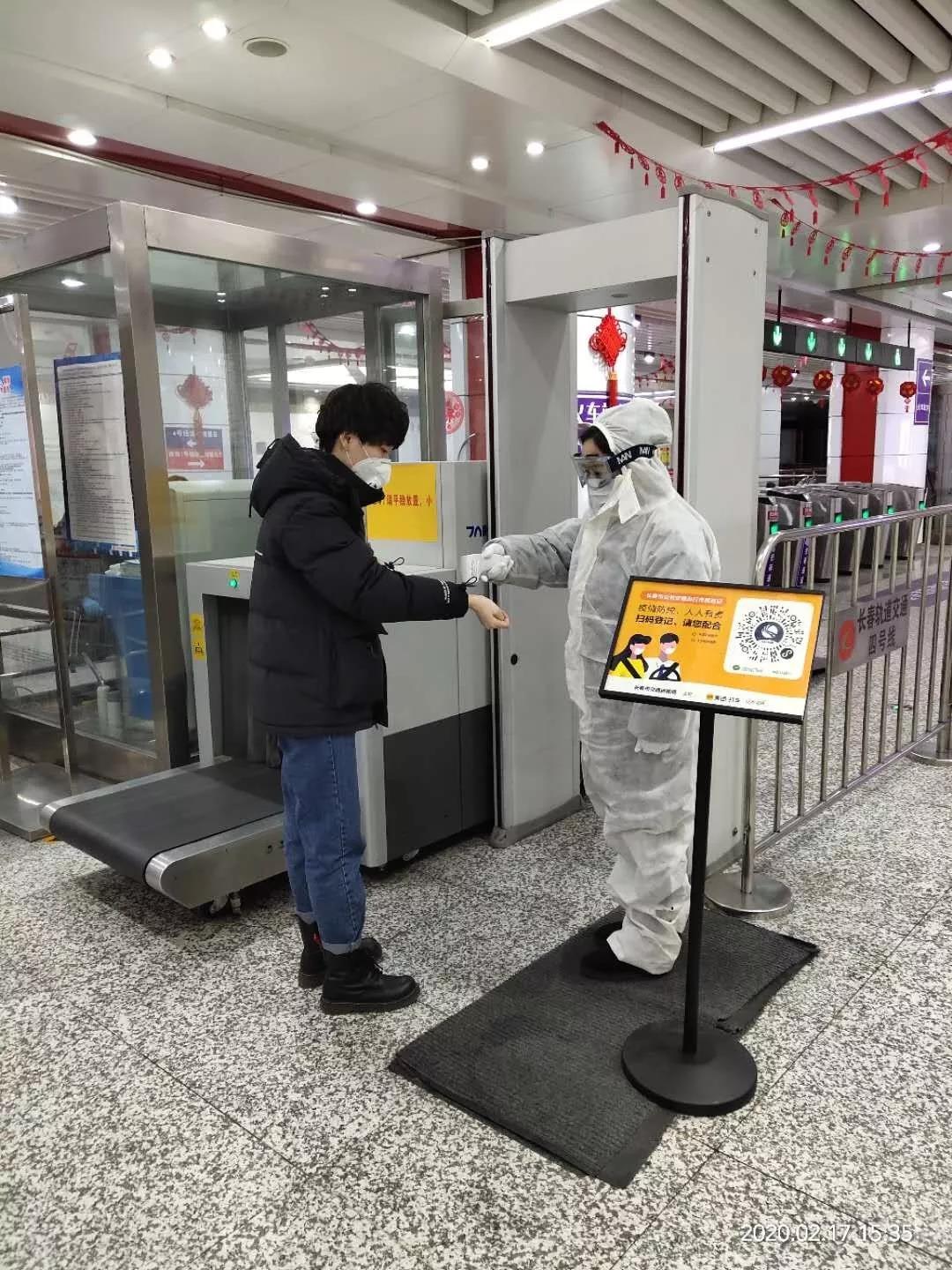 在防控形势日益严峻的情况下,一线青年主动坚守岗位,勇敢面对潜在的危机。乘务二分部加强日常消毒56次、体温检测929次;站务三分部对车站的公共区、售票机、闸机、安检机、卫生间和列车的座椅、扶手等乘客频繁接触的区域强化清洁消毒14848次,切实保障出行市民的乘车安全。其中站务二分部每日引导乘客4000余人次,为乘客测试体温2000余人次,每日开通排风工况次数5次。在部分轨道交通线路闭站期间,乘务三分部驾驶员于2月3日连夜对需要闭站的15个站点粘贴闭站警示 ,以防止此期间驾驶员出现越站冒站等情况。每天对轮乘室和备用室每隔两个小时消杀一次,同时加强线网所有车站、列车的通风和消杀工作,在他们心中有着共同的信念:“保护好乘客,就是保护城市,就是保护家人”。