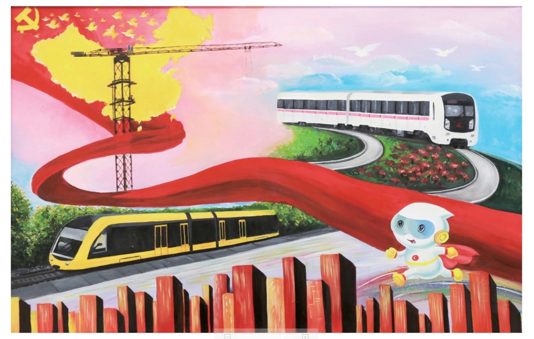 ▲刘爱妮《共建轨道交通 同筑畅行春城》参展作品