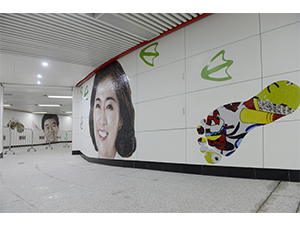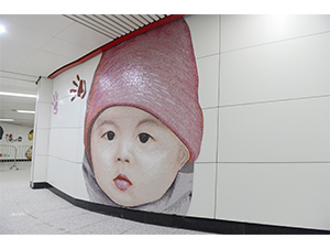 作品说明:这件公共艺术作品采集了很多长春市民的脚印和笑脸,将人们由幼年到老年的成长印记贯穿为一个承载着快乐记忆的通道,在孩子们脚印的剪影图片中还镶嵌着可以映照出行人影像的凹凸镜,使其更有互动性和趣味性。作品以跃动的色彩,活泼而充满趣味感的艺术形式,使整个地铁空间成为一个将个体成长的印记、集体记忆与城市脉动连接起来的鲜活载体。创作主持:殷小烽、王中策划执行:武定宇、赵一璟创作团队:范文博、孙鑫创作时间:2018年9月
