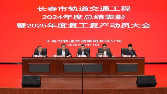 2月11日,长春市轨道交通工程2024年度总结表彰暨2025年度复工复产动员大会召开,会议由集团公司党委书记、董事长孙会勇主持,长春市城乡建设委员会副主任王化锋,集团公司党委副书记、总经理江涛,建委相关部门、建设事业总部、各施工、监理、勘察、设计、三方监测、风险咨询等单位相关领导及负责同志共同出席了会议。