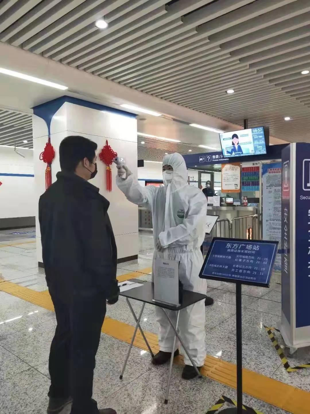 在防控形势日益严峻的情况下,一线青年主动坚守岗位,勇敢面对潜在的危机。乘务二分部加强日常消毒56次、体温检测929次;站务三分部对车站的公共区、售票机、闸机、安检机、卫生间和列车的座椅、扶手等乘客频繁接触的区域强化清洁消毒14848次,切实保障出行市民的乘车安全。其中站务二分部每日引导乘客4000余人次,为乘客测试体温2000余人次,每日开通排风工况次数5次。在部分轨道交通线路闭站期间,乘务三分部驾驶员于2月3日连夜对需要闭站的15个站点粘贴闭站警示 ,以防止此期间驾驶员出现越站冒站等情况。每天对轮乘室和备用室每隔两个小时消杀一次,同时加强线网所有车站、列车的通风和消杀工作,在他们心中有着共同的信念:“保护好乘客,就是保护城市,就是保护家人”。