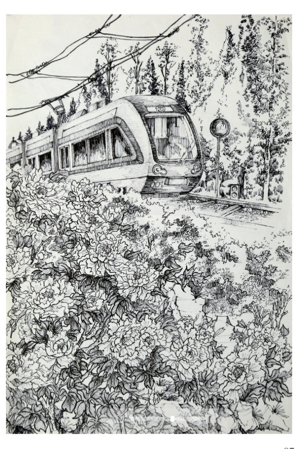 ▲刘爱妮《共建轨道交通 同筑畅行春城》参展作品